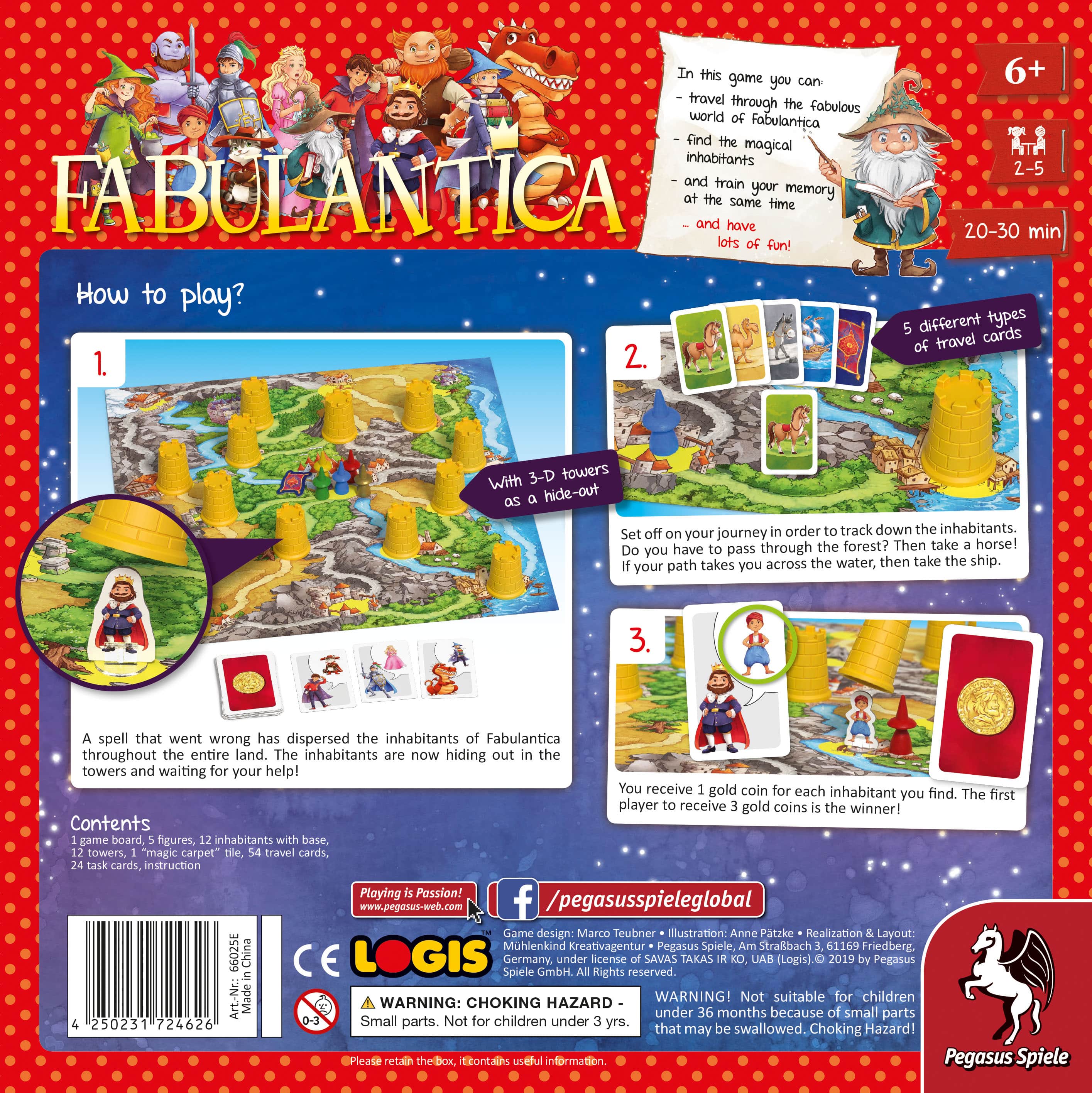 With accessible rules Fabulantica challenges players from age 6 and up to make the best out of their hand cards, to pay close attention at all times so that no residents “disappear” again, and move efficiently to succeed.