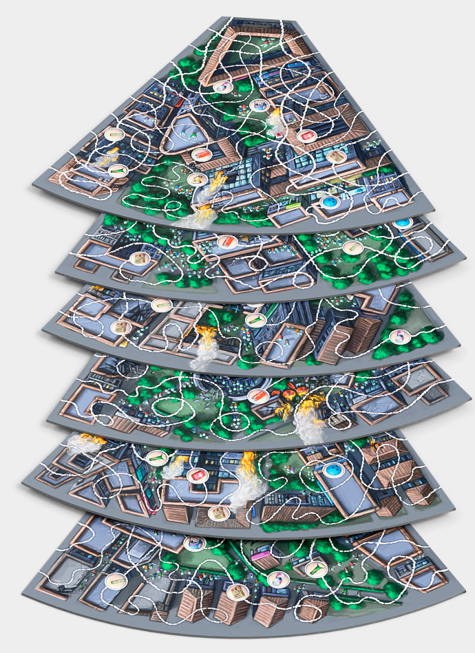 One by one, each of the three paths is traced to see what supplies were located, resulting in new items for anyone who was successful. Lastly, players prepare for the next round by changing the city board layout, revealing a new set of paths to explore. Whoever can collect all 12 of their items first, will win!